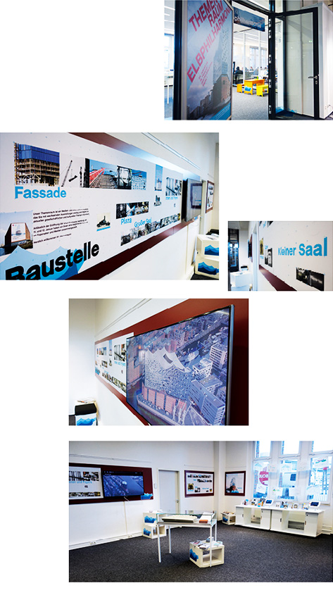 Ca. 2.000 Meter vom Original entfernt durften wir eine Ausstellung zu Hamburgs neuem Wahrzeichen gestalten.