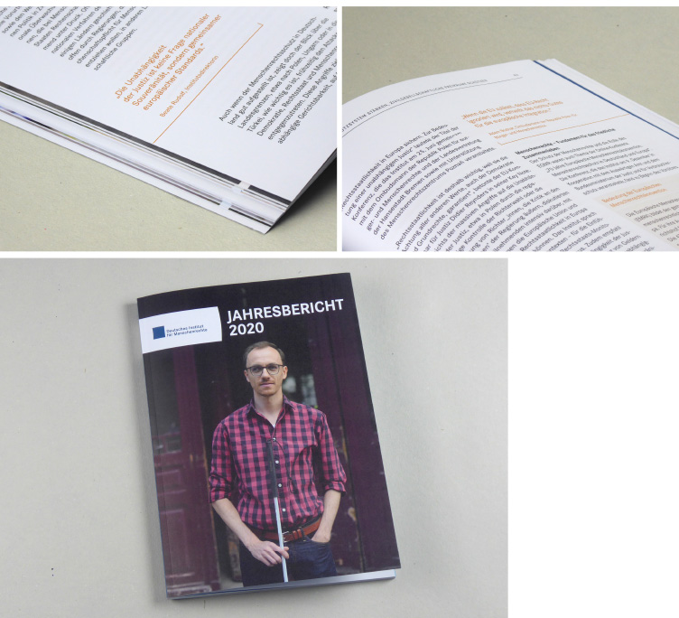 Das Deutsche Institut für Menschenrechte hat die Aufgabe, den Respekt für Menschenrechte und eine Kultur der Menschenrechte in Politik und Gesellschaft zu fördern. Bereits zum zweiten Mal konnten wir den Jahresbericht des Instituts gestalten.
