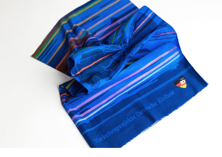 30 Jahre Deutsche Einheit stellten und stellen auch die Entwicklung von Verkehrswegen und Infrastruktur vor Herausforderungen. Das BMVI informierte 2019 ausführlich über die Verkehrsprojekte Deutsche Einheit (VDE). Wir unterstützten die Kommunikation mit Illustrationen in verschiedenen Stilen, die in Film- und Medienkampagnen breiten Einsatz fanden. Und für Menschen, die viel unterwegs sind, aber wenig mitschleppen möchten, gestalteten wir ein praktisches Schlauchtuch in VDE-Optik.